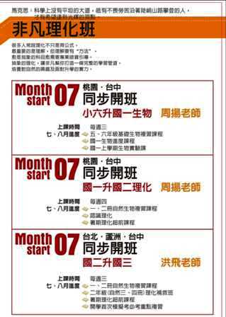 升國二免試入學班 https://www.sugarsync.com/pf/D425191_7569394_846652 誰說你的理化沒救 是他帶我進入清大,擠進台大 台北蘆洲,台南成功,亮麗成績捨我其誰。。 連續七年,莫凡老師,共31位學生,錄取高中數理資優班,雖然不可說全是老師的功勞,也不是單一科自然可以居功,一定是集結各科之大成,方能精銳。但改變絕對是從這裡開始。。。 今年暑假,利用暑假兩個月改變你對理化的死板印象,首席第子 周揚 引導你帶你進入自然科學的奇妙世界,